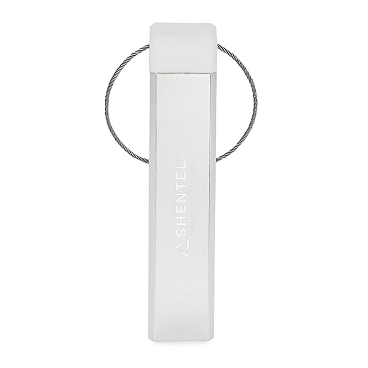 Aluminium avec fini mat ou argent satiné, garniture en plastique, un seul port USB supportant un courant de sortie de DC 5V/1.0A et indicateur de charge DEL rouge.