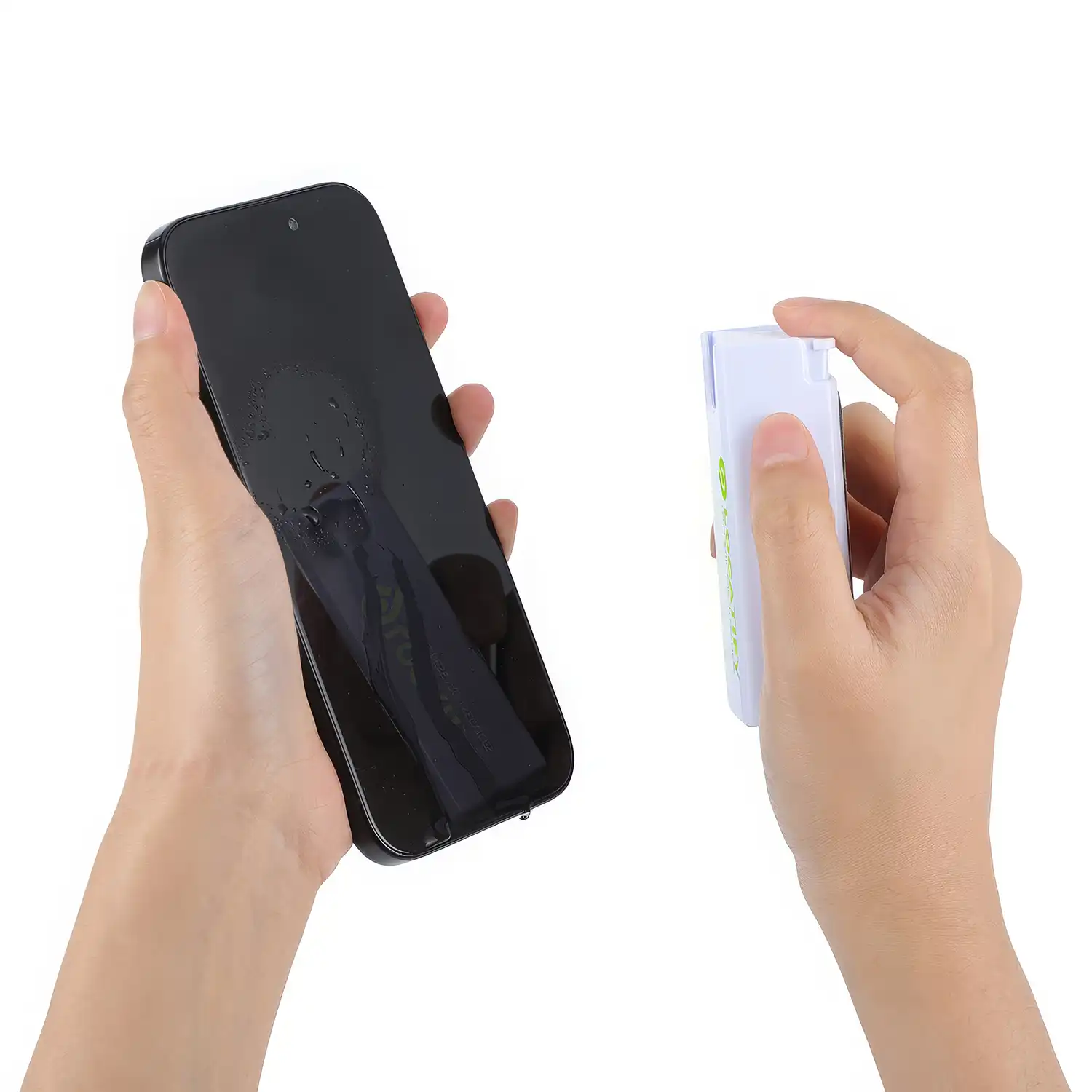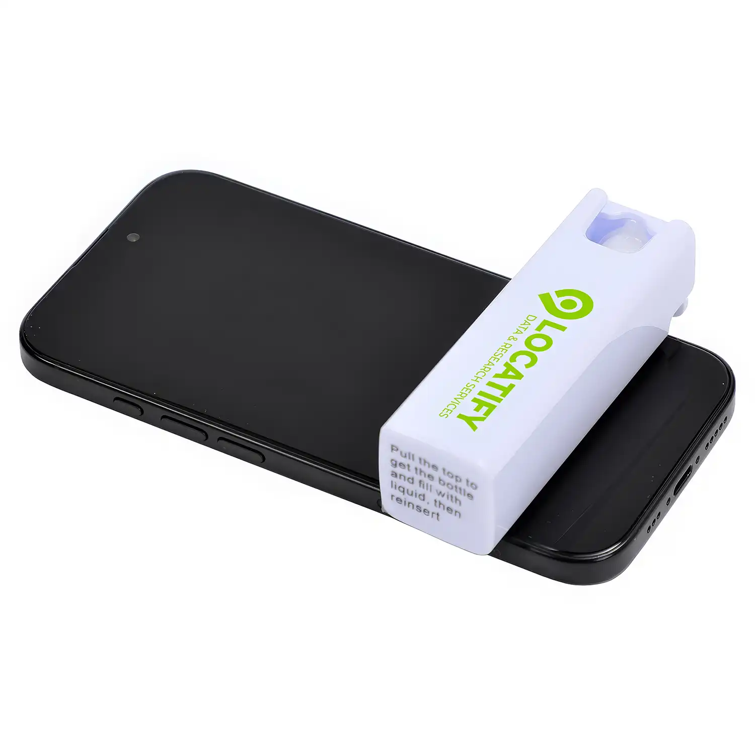 Flacon de nettoyage d'écran compact et portable, conçu pour nettoyer les téléphones cellulaires, les tablettes et autres écrans.
