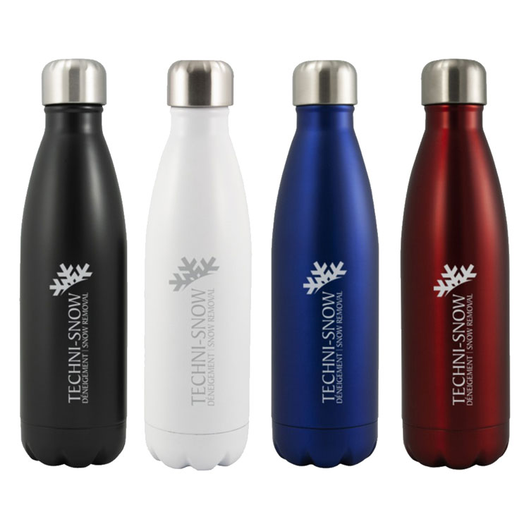 Bouteille isotherme 17 oz à double paroi sous vide en acier inoxydable et fini mat.