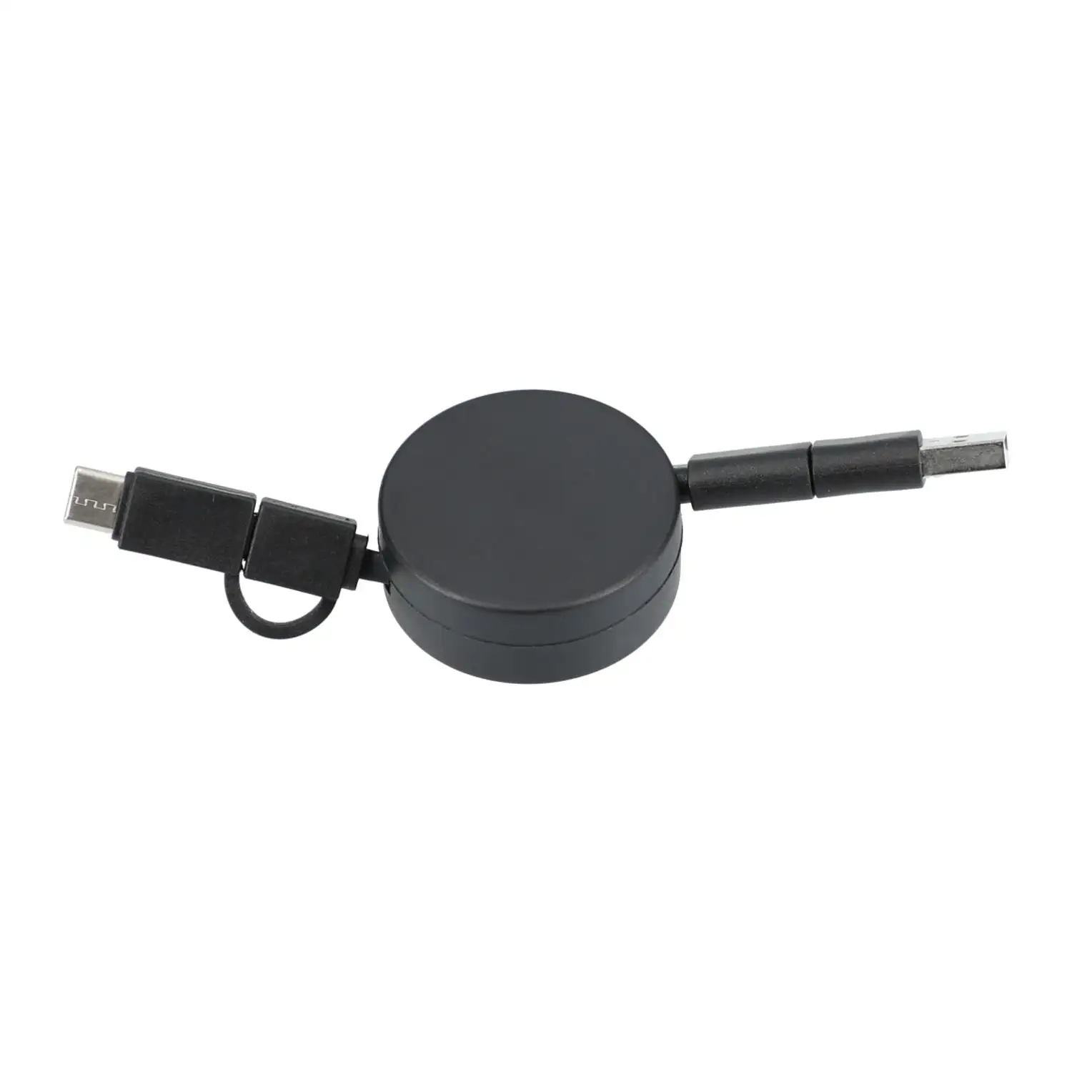 Le câble de charge rétractable 5 en 1 en bambou FSC à 100% peut être étendu jusqu'à 32,6" et comprend un adaptateur d'entrée USB-A et un embout d'entrée Type-C d'un côté. p>