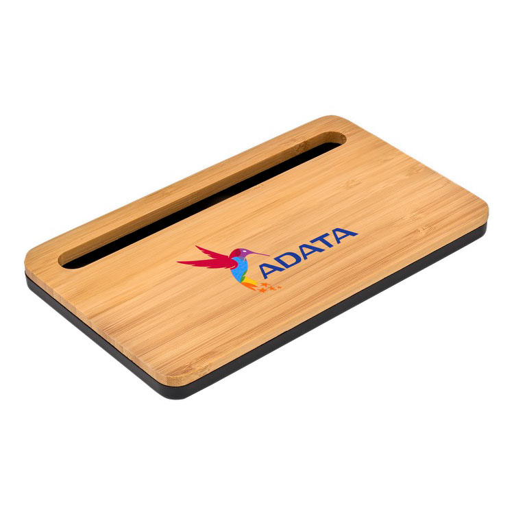 Plaque de charge sans fil mince et légère avec support d'appareil intégré et porte crayon ou stylet.