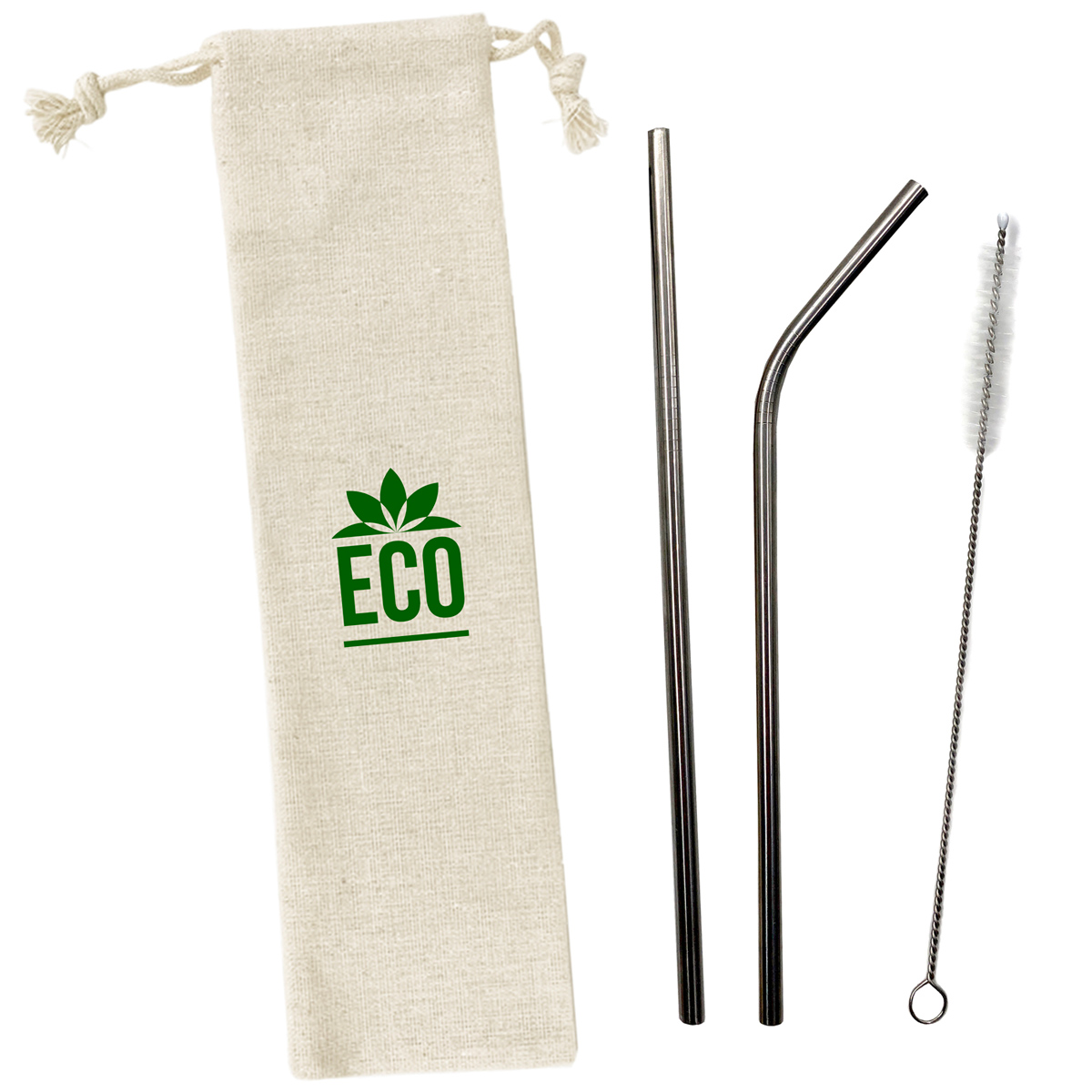 Ajoutez un logo à cet ensemble de pailles en acier inoxydable 3 pièces.