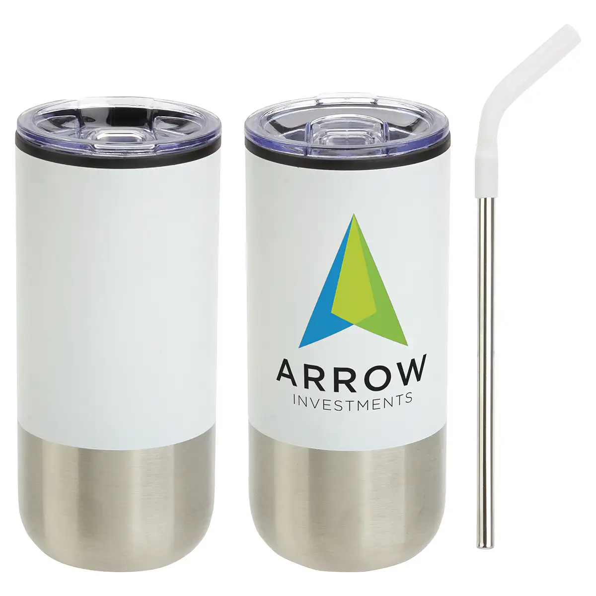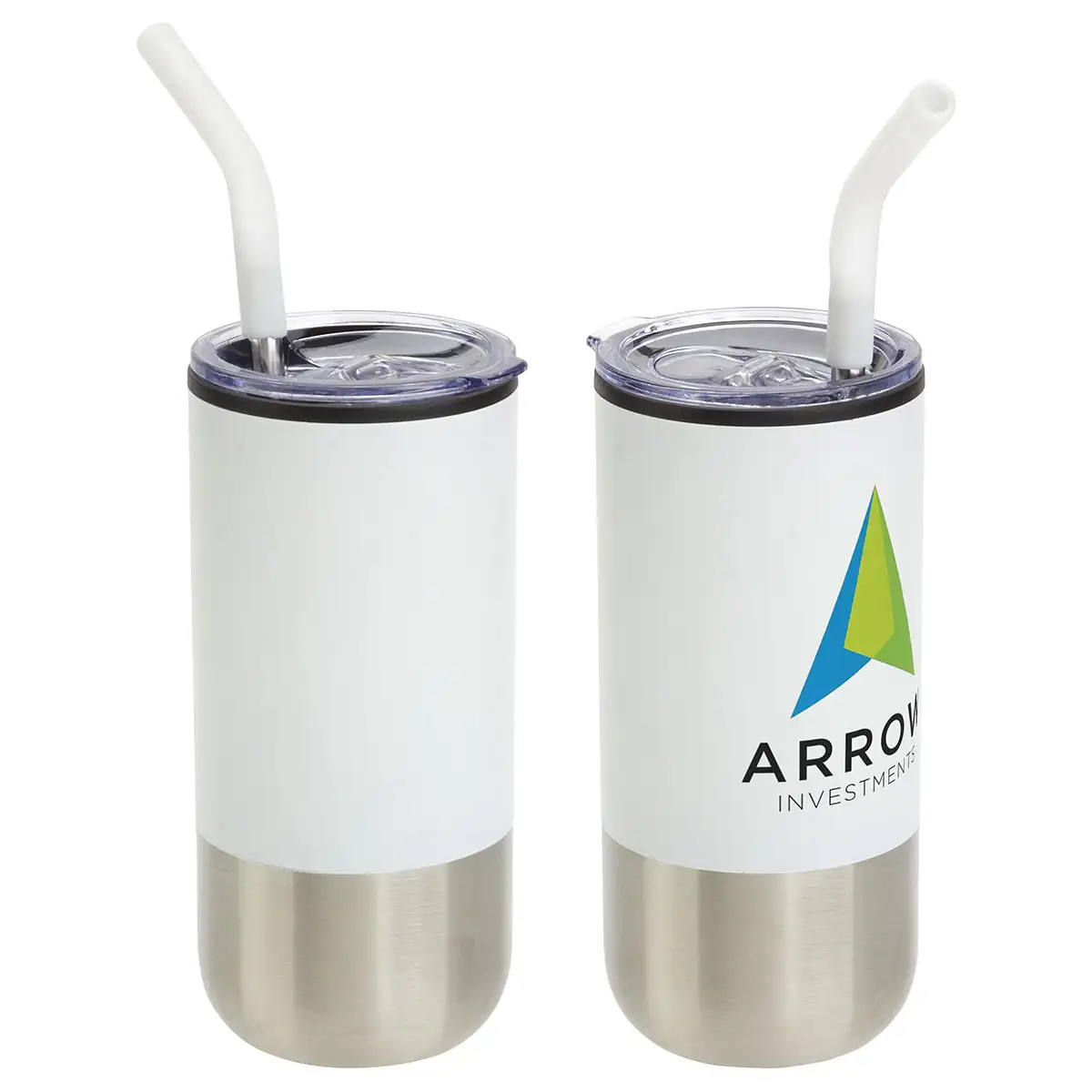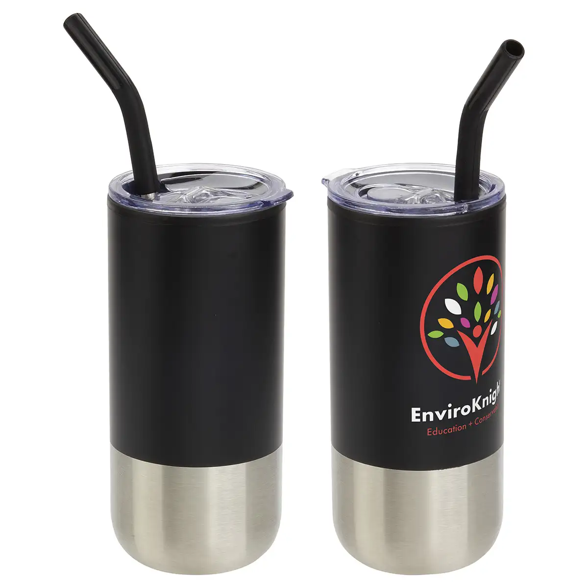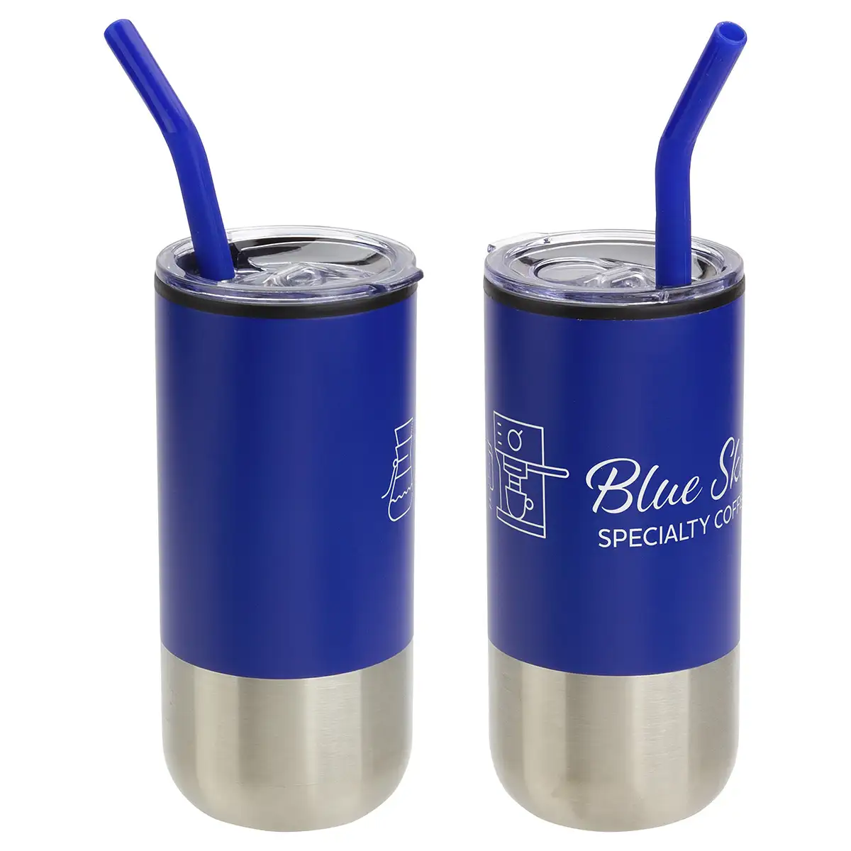 Ajoutez un logo à ce gobelet Oxford 16 oz en acier inoxydable et polypropylène avec paille.