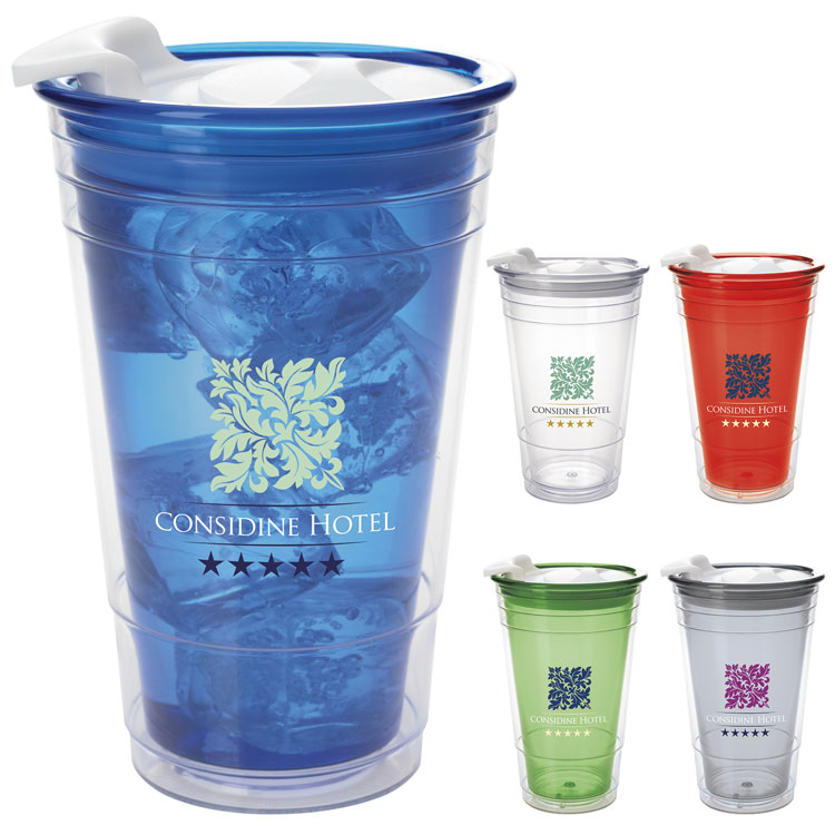 Ajoutez un logo à ce gobelet en plastique double paroi Party avec couvercle 16 onces.
