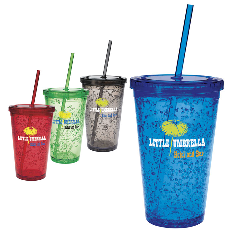 Ajoutez un logo à ce gobelet en plastique double paroi avec gel refroidissant 18 onces.