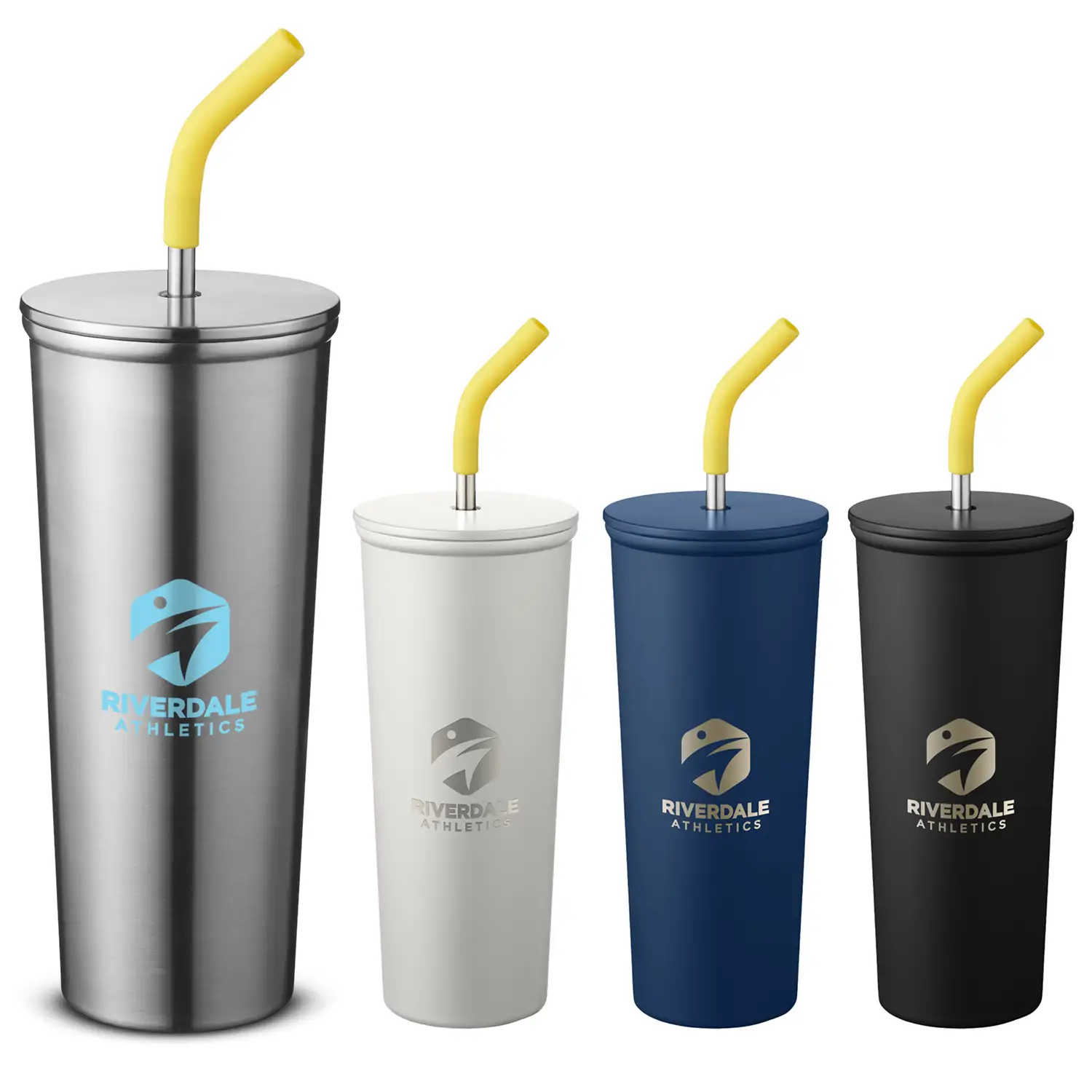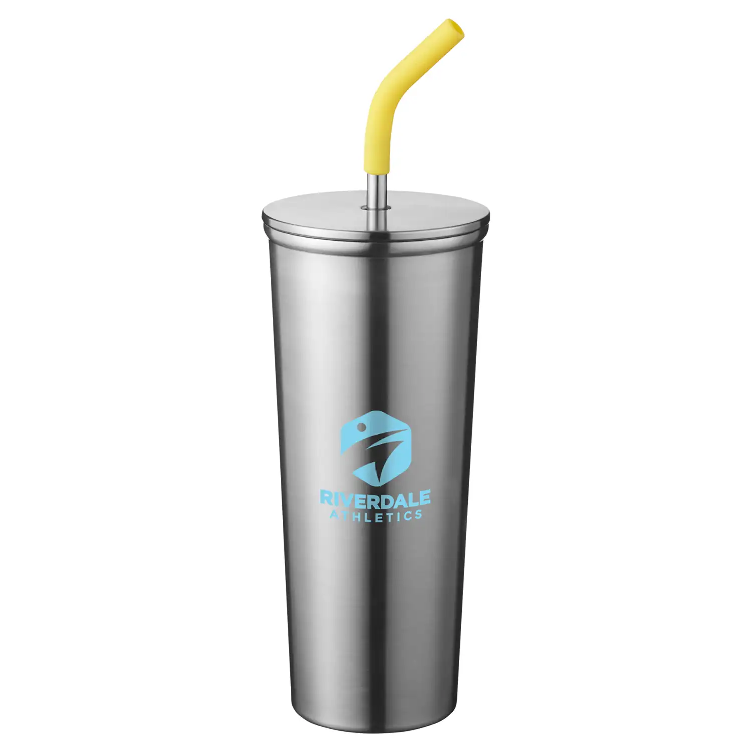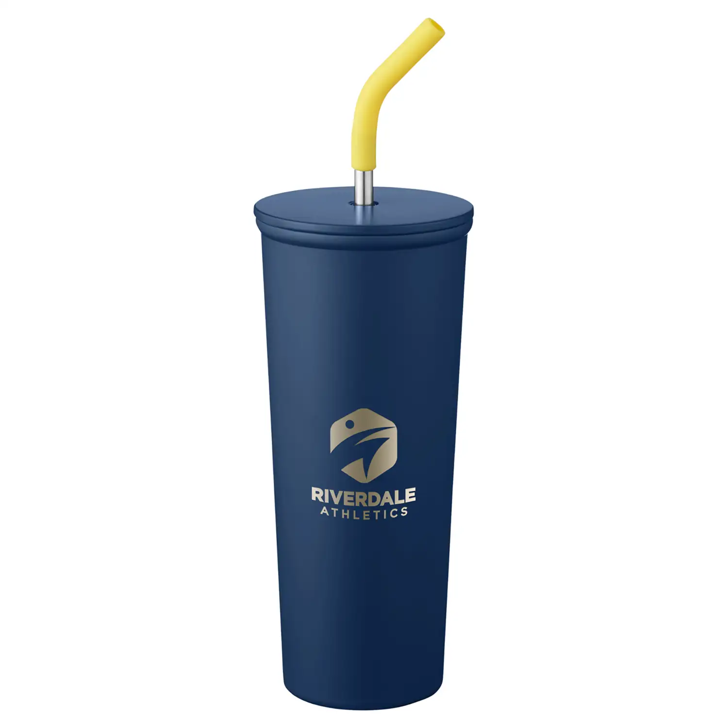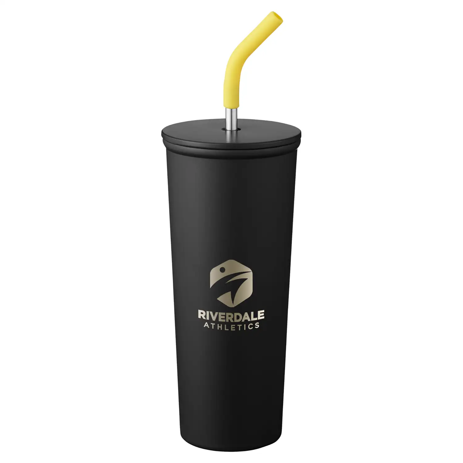 Faites la promotion de votre marque avec ce gobelet isolé sous vide avec paille en acier inoxydable Essex 23 oz.