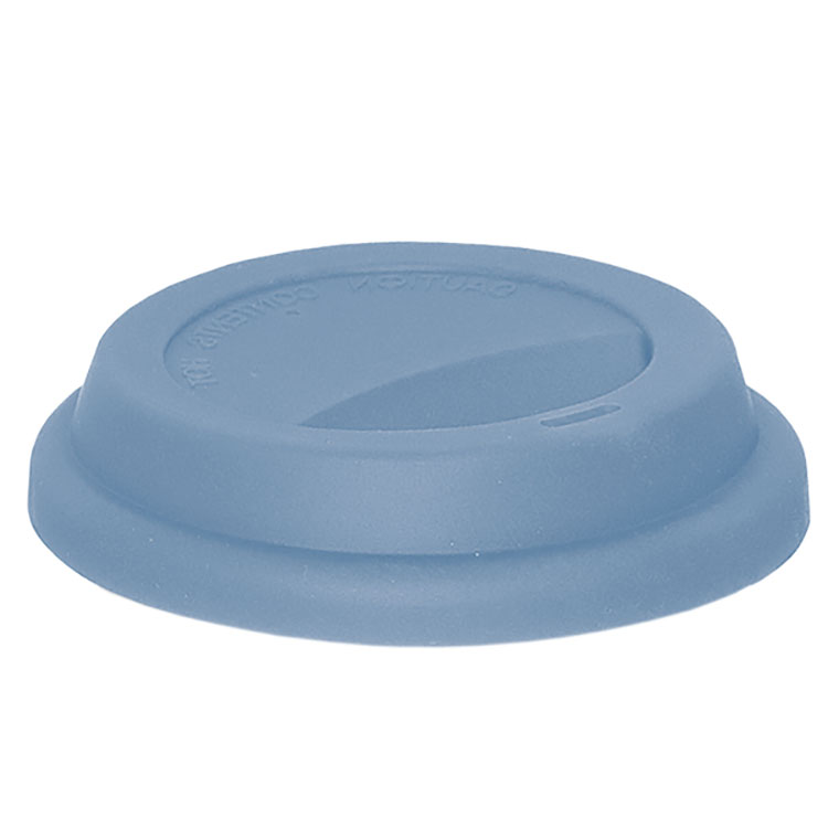 Tasse en porcelaine à double parois au fini lustré avec couvercle en silicone.