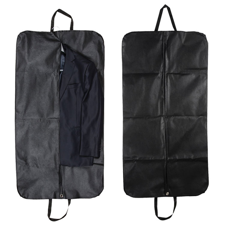 Compartiment principal à fermeture éclair et trou au sommet pour crochet de cintre ainsi qu'une languette en PP pour accrocher la housse à un crochet.