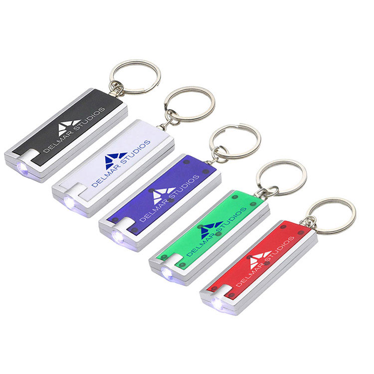 Lampe de poche en plastique avec porte-clés.