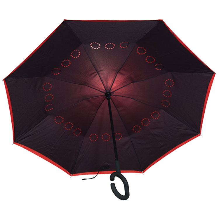 Parapluie réversible avec ouverture manuelle.
