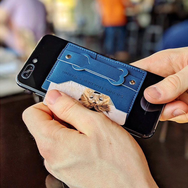 Ajoutez un logo à ce porte-cartes et support pour téléphone Sierra.