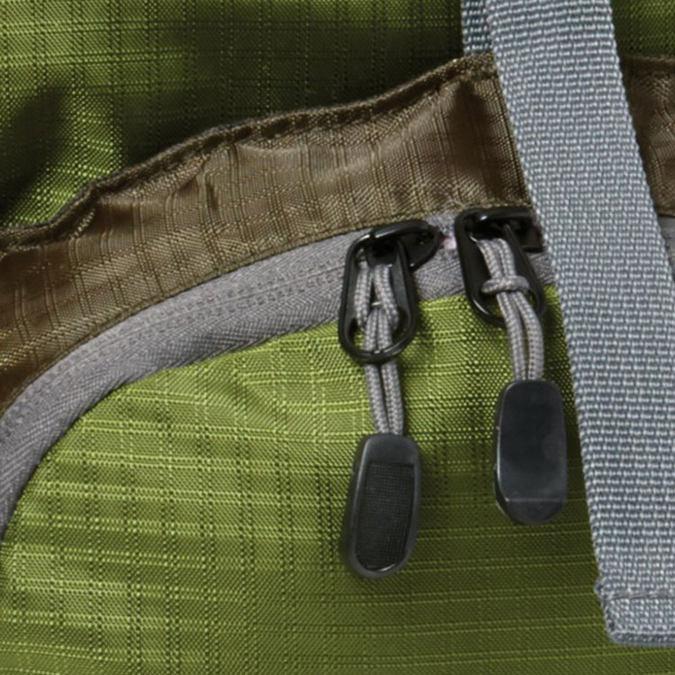 Contient un compartiment principal avec ouverture à fermeture éclair, une pochette à fermeture éclair supplémentaire, une pochette à boucle.