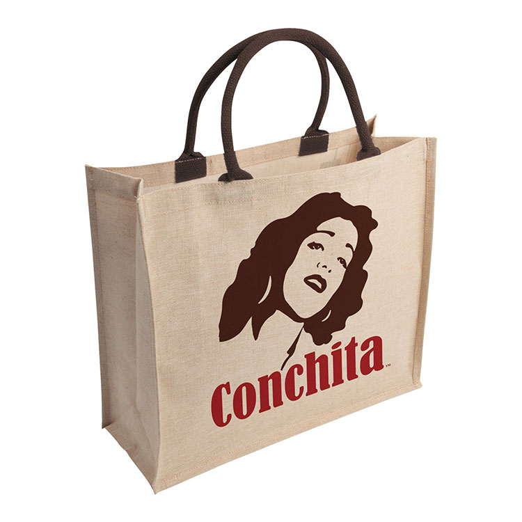 Sac de magasinage en jute et coton avec poignée noire ou marron.