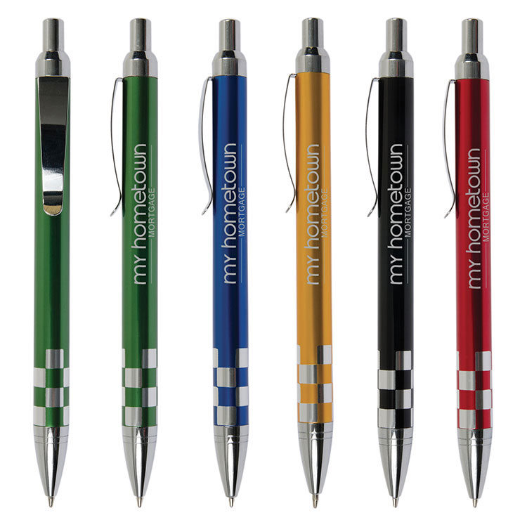 Stylo au motif damier en aluminium.