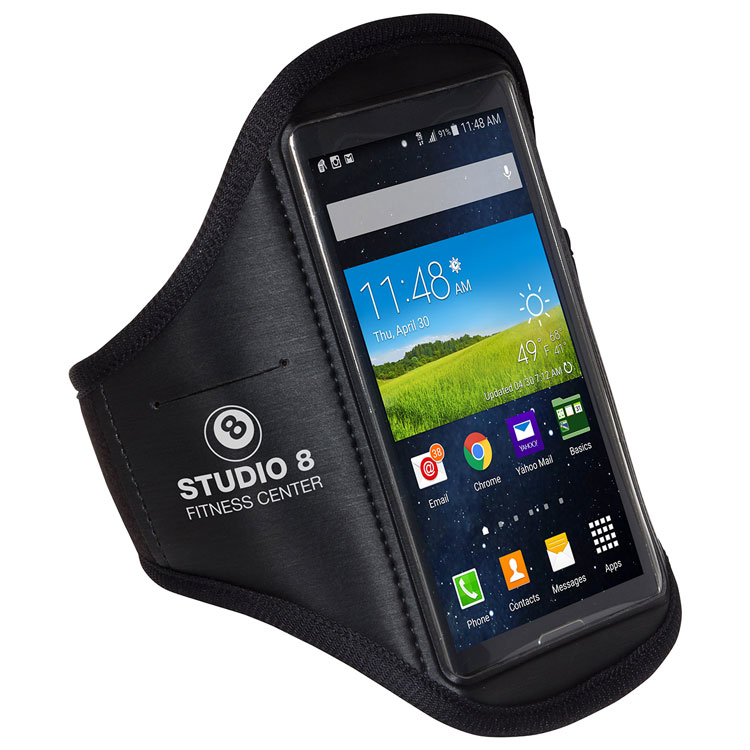 Ajoutez un logo à ce support de téléphone brassard en néoprène.