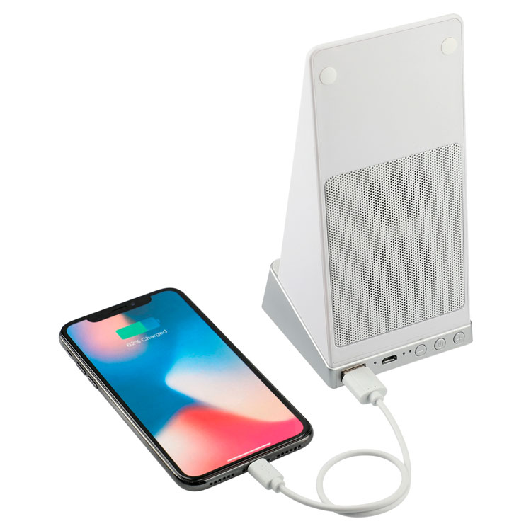 Le support de batterie externe de charge sans fil Weston et le haut-parleur Bluetooth offrent un son de qualité supérieure avec une puissance intégrée!