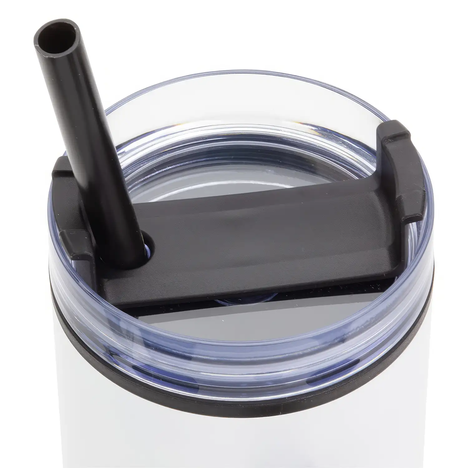 Poignée en plastique noir et paille en plastique noir avec anneau pour garder en sécurité.