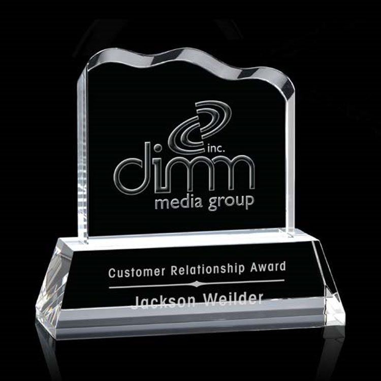 Notre processus "Nouveau Cristaux Liquides" incorpore votre logo directement dans ce trophée Icebergs en cristal créant un effet 3-Dimensions assurant une reconnaissance remarquable.