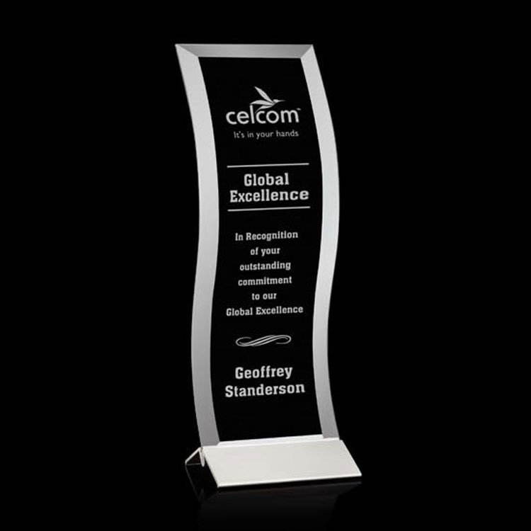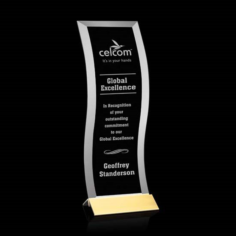 Magnifique trophée grand et ondulé, Starfire avec une base doré ou aluminium brossé.