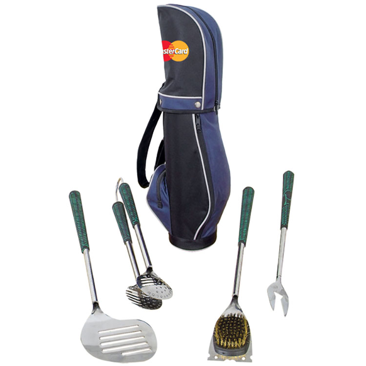 Ajoutez votre logo à cette trousse/sac de golf à 4 ustensiles à BBQ.